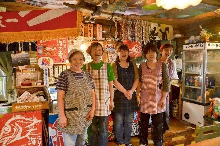 In Rausu Town, down by the sea, where you can find an obscure looking shack which in fact is a fantastic seafood restaurant called "Jyun no Banya" (The Pure Guardhouse). This restaurant is managed and run by six "beach moms" (who really know their seafood!) lead by Emiko Funaki. Here you can enjoy delicious meals made from fresh daily catches and have them prepared boiled, baked or as it is..direct from the sea.